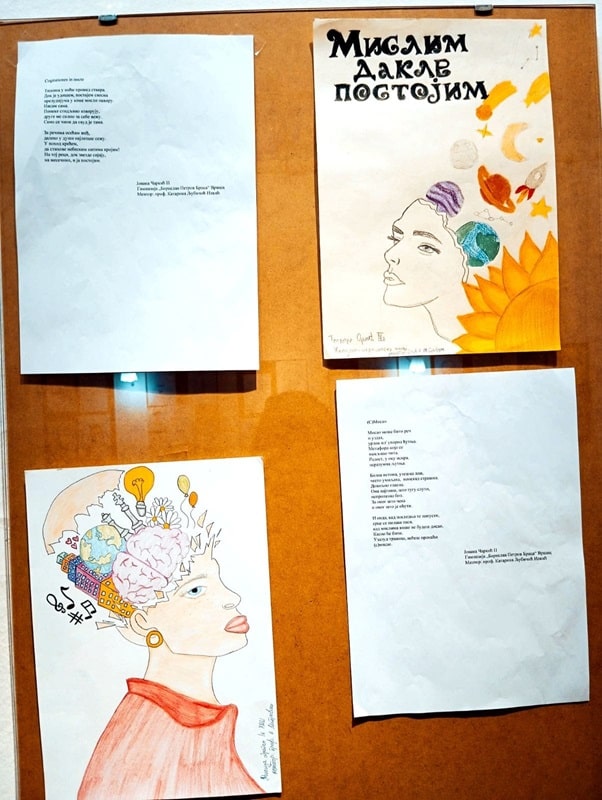 Nakon predavanja ,,Čovek, filozofija i misao“, gde će profesorka Marija da objasni ulogu filozofije u obrazovanju i životu svakog čoveka, zvanično će biti otvorena izložba ,,Mislim, dakle postojim“ i moći ćete da pogledate likovne i literarne radove vršačkih srednjoškolaca, kao i da prisustvujete uručenju pohvala za prvo, drugo i treće mesto u obe kategorije.